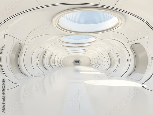 Obraz premium Futuristic White Corridor Interior.