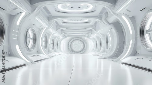 © Longo, Obraz premium Futuristic White Corridor Interior Design