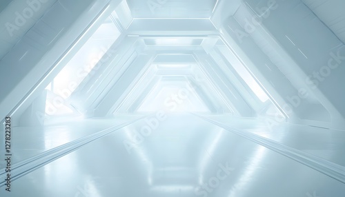 Fototapeta premium Futuristic white corridor with hexagonal frames illuminated by light