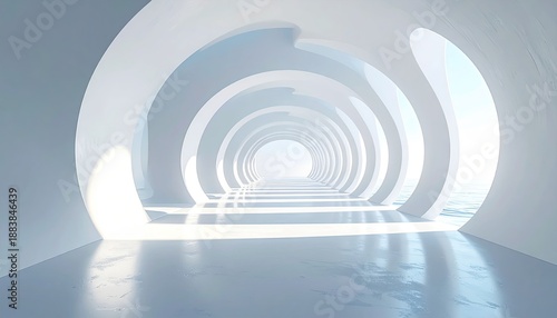 Obraz premium Futuristic, white, curved tunnel open to a bright horizon