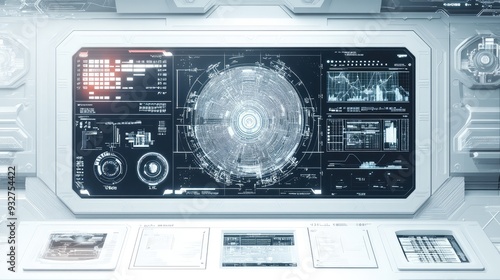 Fototapeta premium Futuristic white digital interface with geometric abstract elements, creating a sleek and clean aesthetic.