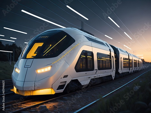 Fototapeta premium futuristic white ecofriendly electric train. ai generative