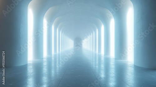 © Tatiana Vagizova, Fototapeta premium Futuristic White Hallway with Light Pillars. Generative AI