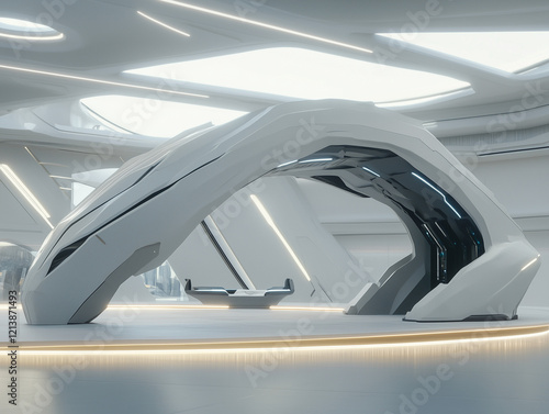 © Huo, Obraz premium Futuristic White High-Tech Command Center