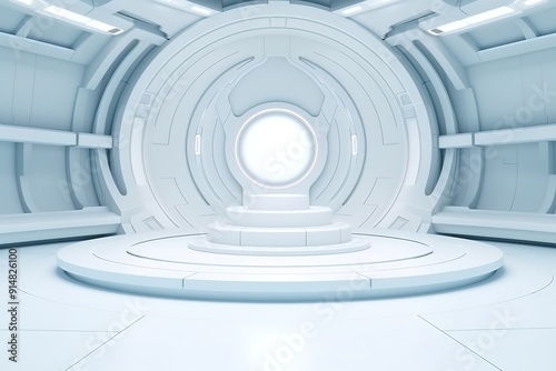 Obraz premium Futuristic white platform in a circular room.