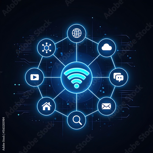 Obraz premium Futuristic Wireless Network Connectivity Diagram.