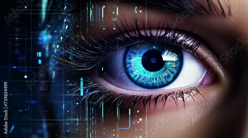 Fototapeta premium Futuristic woman eye display cyberspace concept science background