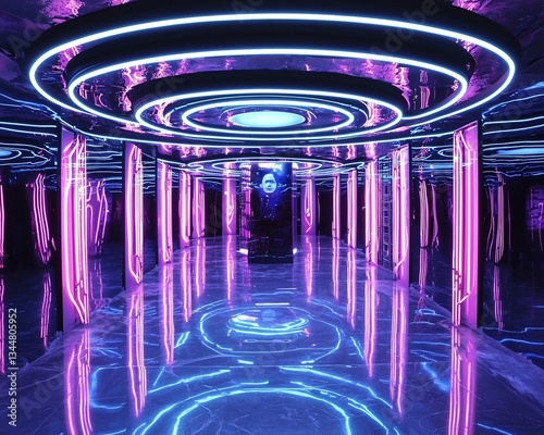 © aanupapan, Obraz premium Futuristic workspace blending digital remote work and physical office collaboration