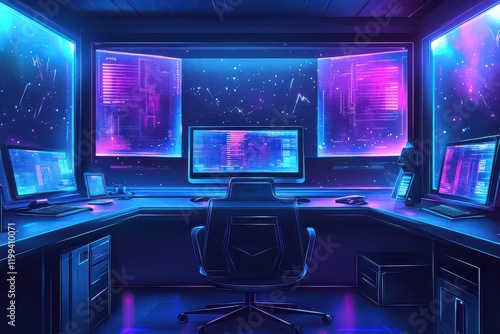 © Rashidi, Fototapeta premium Futuristic Workspace with Holographic Screens