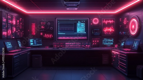 Obraz premium Futuristic Workspace with Holographic Technology and Data Analytics Displays