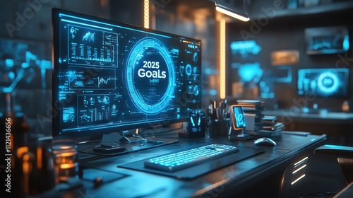 Obraz premium Futuristic Workspace with Holographic Vision Board