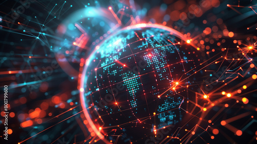 © Jiranun, Obraz premium Futuristic world glow digital technology.