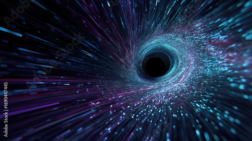 © Suresh Thangavel, Obraz premium Futuristic wormhole tunnel of neon light particles, abstract vortex.