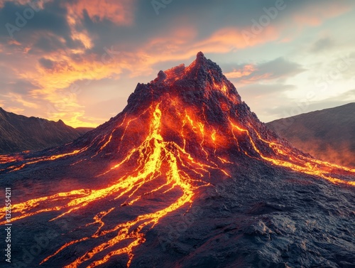 © Chadamas, Fototapeta premium FuturisticCyber Futuristic Volcano Overview Patterns