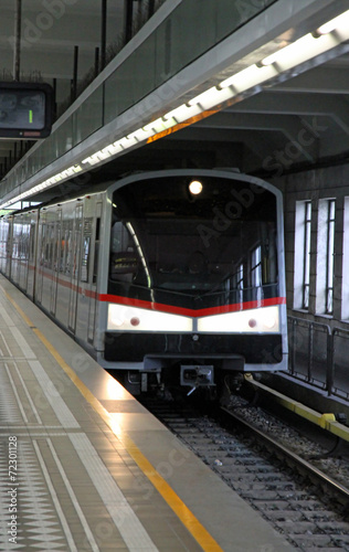 © ChiccoDodiFC, Fototapeta premium futurystyczne metro wjeżdża na stację kolejową