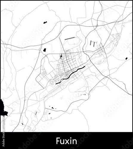 © Kuemin, Fototapeta premium Fuxin city map, China - Topographic vector map poster