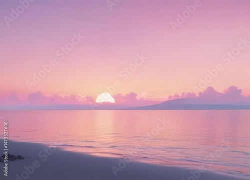 © Omsin, Fototapeta premium Fuzzy pastel sunset, pink blue yellow gradient, background, airy, vignette