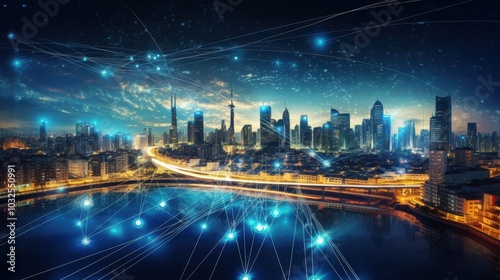 Fototapeta premium 5G, 6G, Big data wireless network, high speed internet, cloud computing or connect diagram technology, Data storage, service, synchronize, online, financial, Connectivity global, smart city, Gen AI
