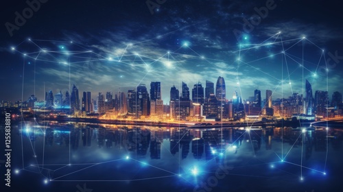 Fototapeta premium 5G, 6G, Big data wireless network, high speed internet, cloud computing or connect diagram technology, Data storage, service, synchronize, online, financial, Connectivity global, smart city, Gen AI