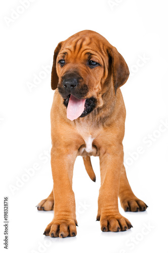 © DoraZett, Fototapeta premium Gähnender Rhodesian Ridgeback Welpe isoliert auf weißem Hintergrund