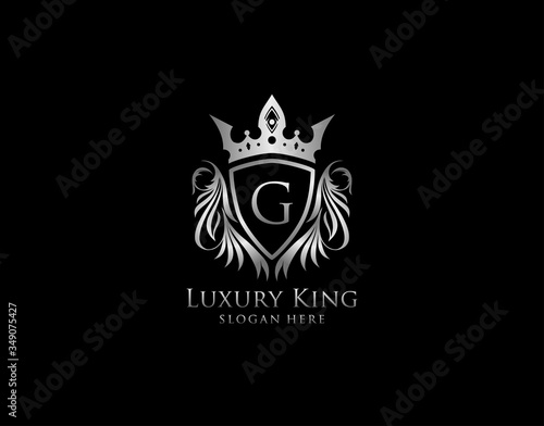 Fototapeta premium G Letter Luxury Royal King Crest, Silver Shield Logo template