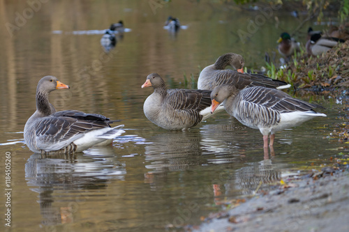 © Norbert Kiel, Obraz premium Gänse am Ufer