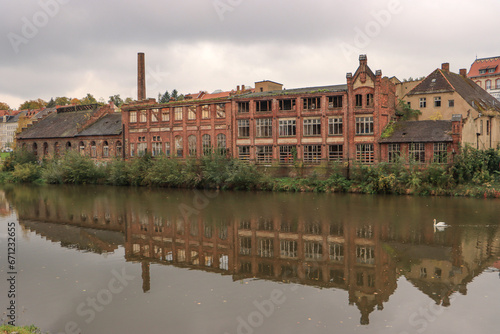 © holger.l.berlin, Naklejka premium Görlitz; Neißeufer mit Fabrikruine der Kondensatorenwerke
