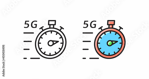 © Yuliya Lins, Obraz premium 5G technology high speed icon. Vector infographic. Editable strokes.