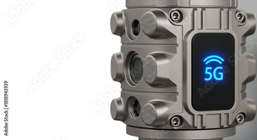 Naklejka premium 5G wireless connection showcased with modern metal device, emphasizing connectivity and innovation in current technologies. 5G wireless represents advancements in technology,