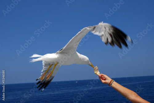 © puckillustrations, Naklejka premium gabbiano che mangia da uomo
