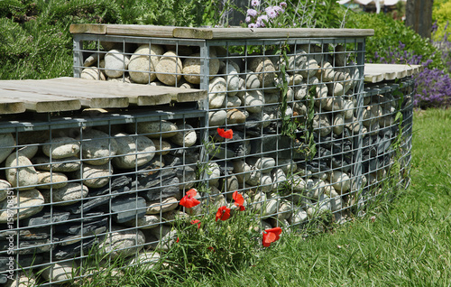 © hcast, Fototapeta premium Gabion de galets dans un espace vert