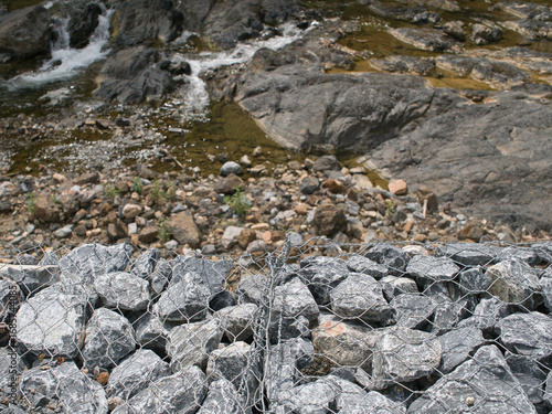 Fototapeta premium Gabion wall prevents the collapse of roads and rivers.