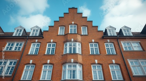© Lemdah, Fototapeta premium Gable brick building facade.