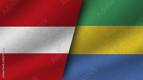 Naklejka premium Gabon and Austria Realistic Two Flags Together, 3D Illustration