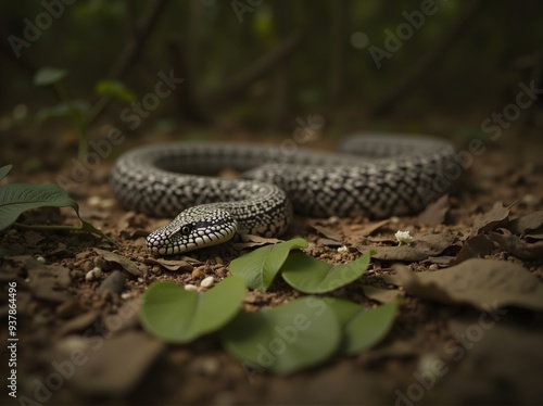 © Prana, Fototapeta premium Gaboon viper camouflaged on forest floor