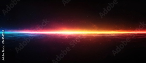 © Jeannaa, Obraz premium galactic center gravity concept. A vibrant, abstract depiction of a colorful light spectrum against a dark background, showcasing a blend of blue, orange, and red hues.