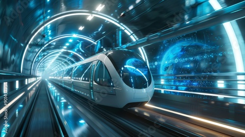 Fototapeta premium Galactic Express Futuristic Autonomous Train Journeying through Space Tunnel...