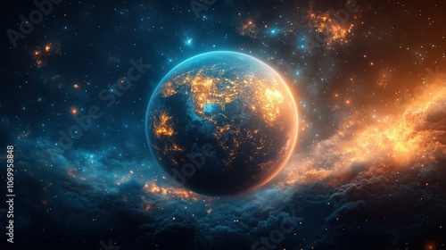 © Vadymation, Fototapeta premium Galactic Glow Earth in Cosmic Embrace