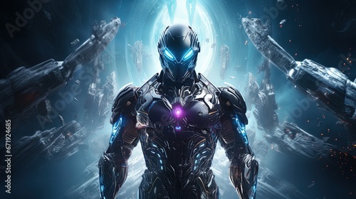 © Artcuboy, Naklejka premium galactic guardian, digital art illustration, Generative AI