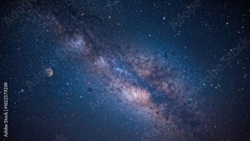 Fototapeta premium Galactic panorama of stars, planets, and luminous flares colored blue and...