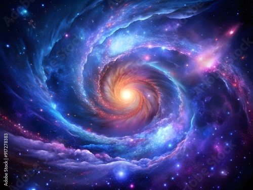 Obraz premium Galactic Vortex: Swirling Stars, Cosmic Dust, and Vibrant Nebula Art in Deep...