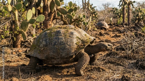 © GradPlanet, Obraz premium Galapagos giant tortoise in its natural habitat.
