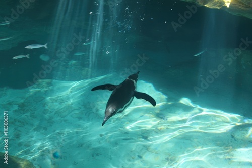 © Nico, Obraz premium Galapagos Penguin Swimming