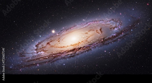 © Maria, Fototapeta premium Galassia spirale brilla intensamente nello spazio oscuro stelle brillano dolcemente. AI Generated