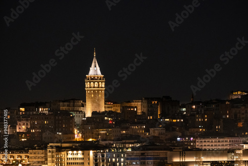 Naklejka premium Galata tower at night in Istanbul, Turkey.