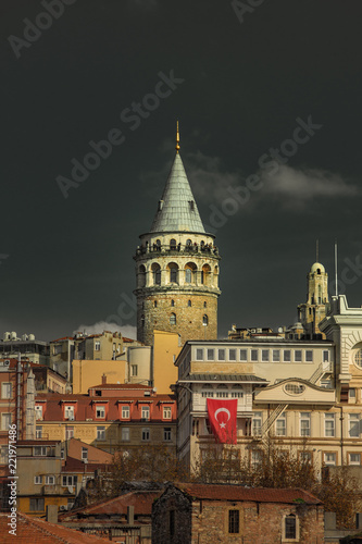 Fototapeta premium Galata Tower in Istanbul Turkey in dramatic light