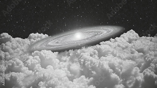 Fototapeta premium Galaxy over Cloudscape A Stunning Black and White Celestial Image