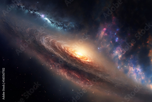 Fototapeta premium Galaxy panorama. Generative digital art. AI illustration.