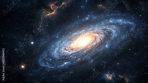 Naklejka premium Galaxy spiral with stars and bright core, dark background