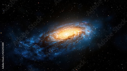Fototapeta premium Galaxy with a bright blue star at the center surrounded by cosmic elements in...